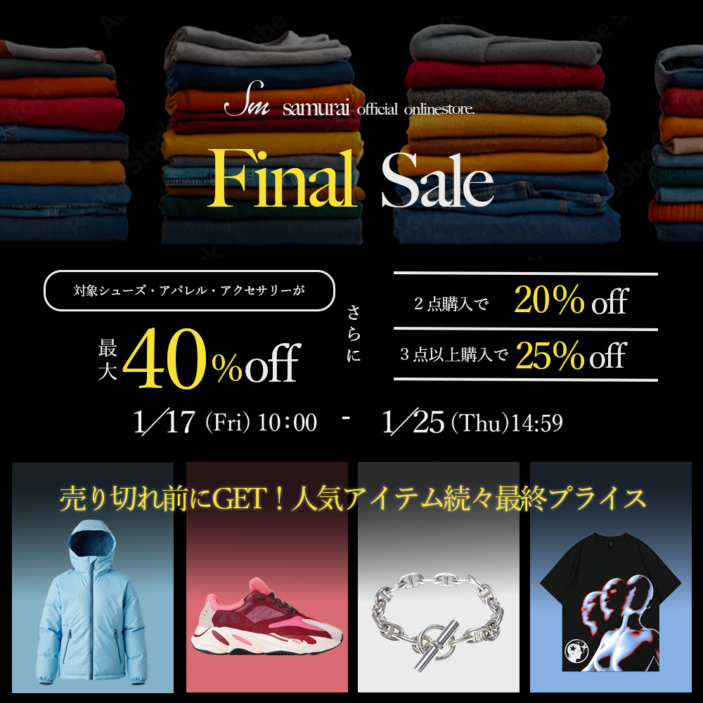 「Final Sale」の文字をコントラストの高い黄色で大きく配置し、ユーザーの目を瞬時に引きつけ、セール開始時期よりも割引率へ視線が流れるように設計しました。